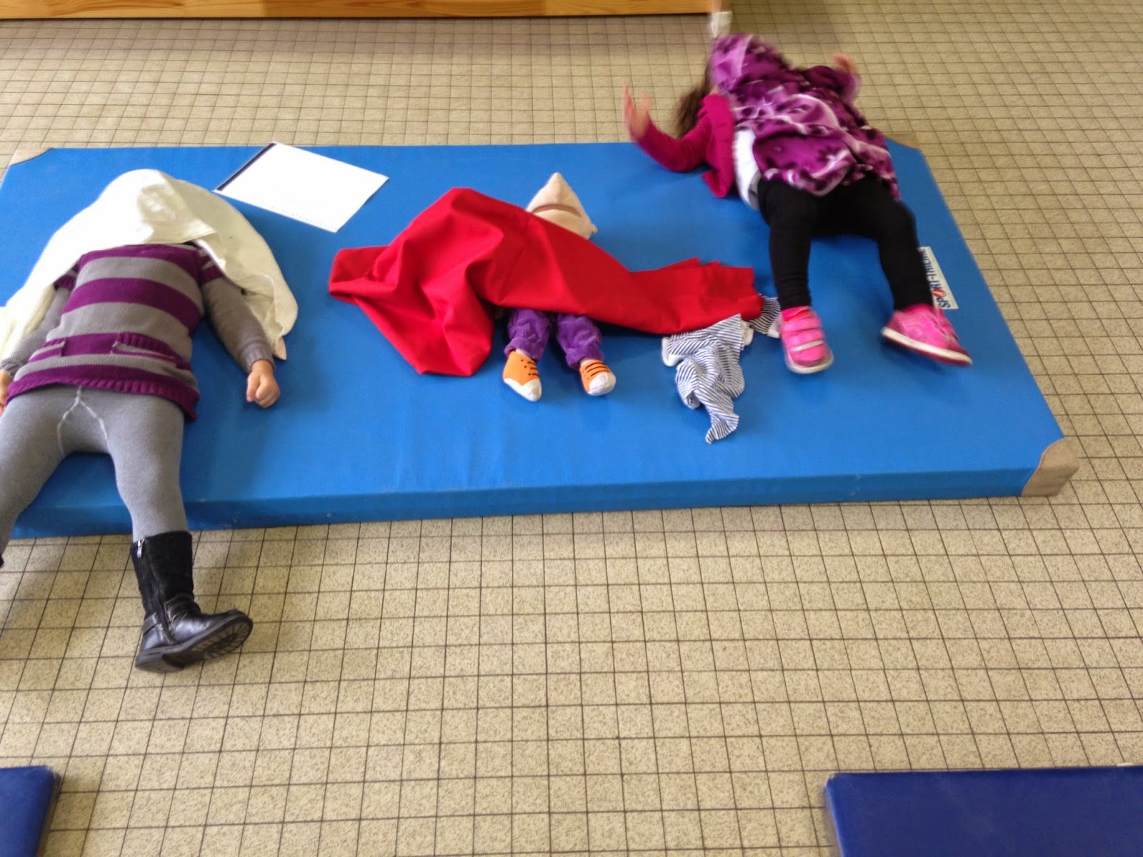 Het was slaaptijd voor Jules en al gauw had Jules het koud aan zijn voeten. We legden er een dekentje over. Opeens hadden de voeten van de juf en de kindjes het ook koud. We deden mee.
